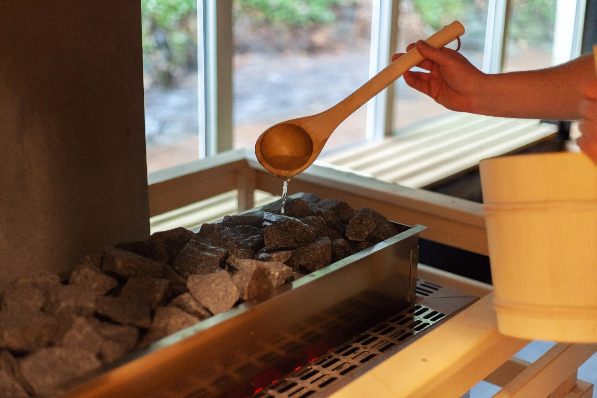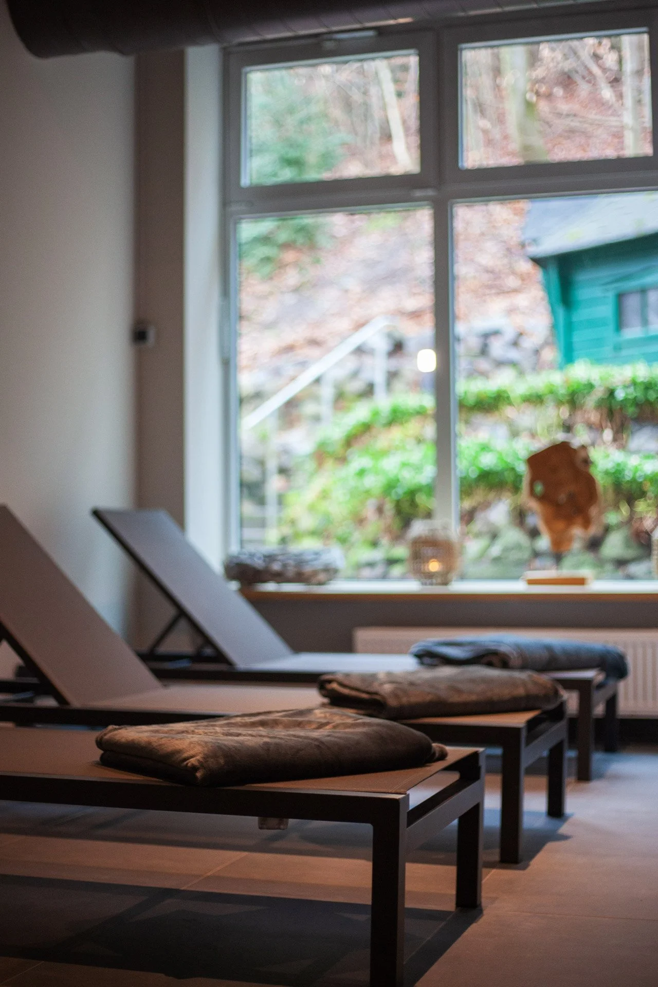 Im Indoor Bereich der Waldsauna erwarten die Besucher*innen unterschiedliche Saunen, wohltuende Dämpfe und angenehme Aromen. Die großzügigen Räumlichkeiten bieten neben Spa-Einrichtungen auch diverse Rückzugsorte um Ruhe und Energie zu tanken sowie Getränke und Speisen zu sich zu nehmen.